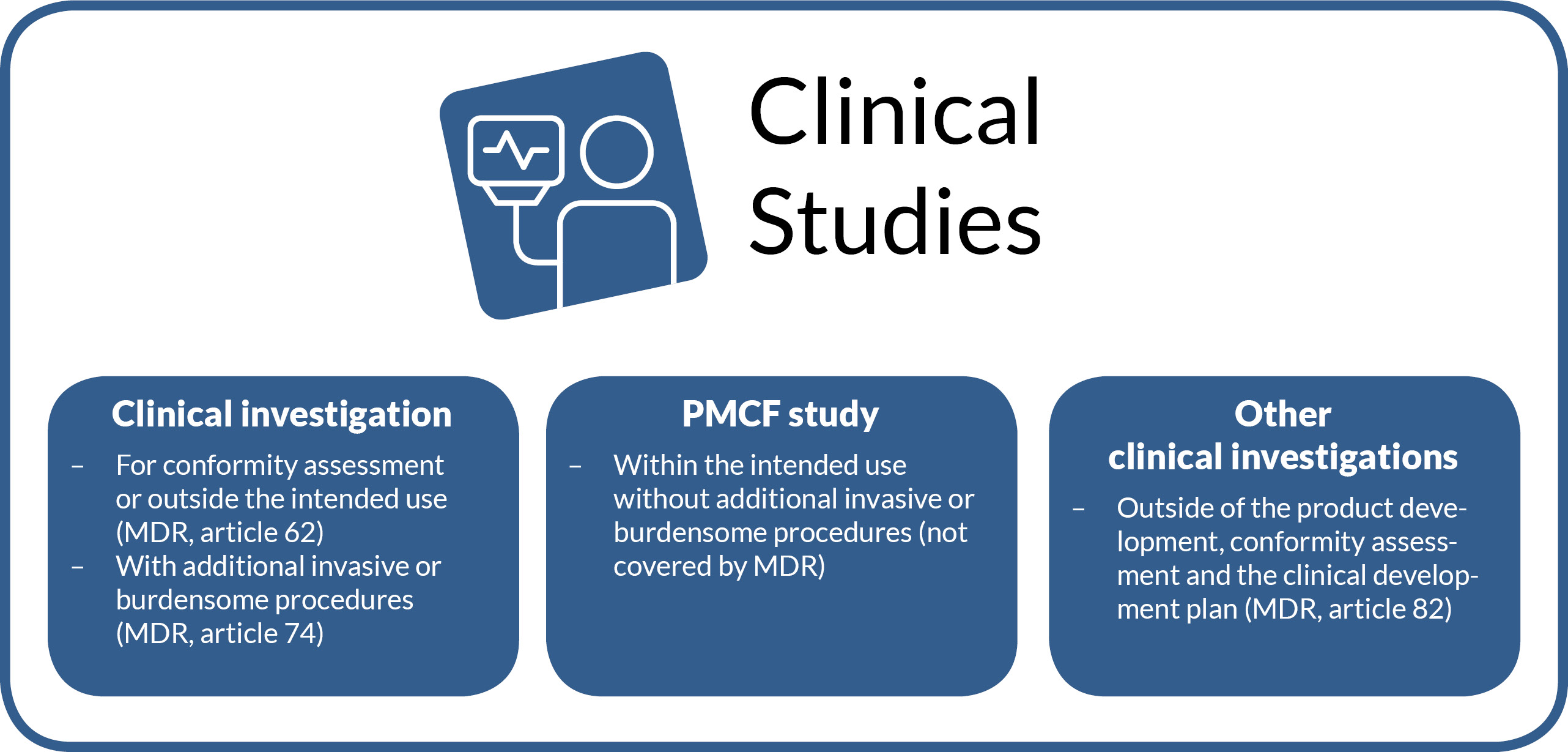 There are different types of studies for medical devices. The choice depends on the regulatory status, the stage in the product’s lifecycle, and the type of product. In some cases, different approaches may be considered. Below, we describe the relevant types of studies.
