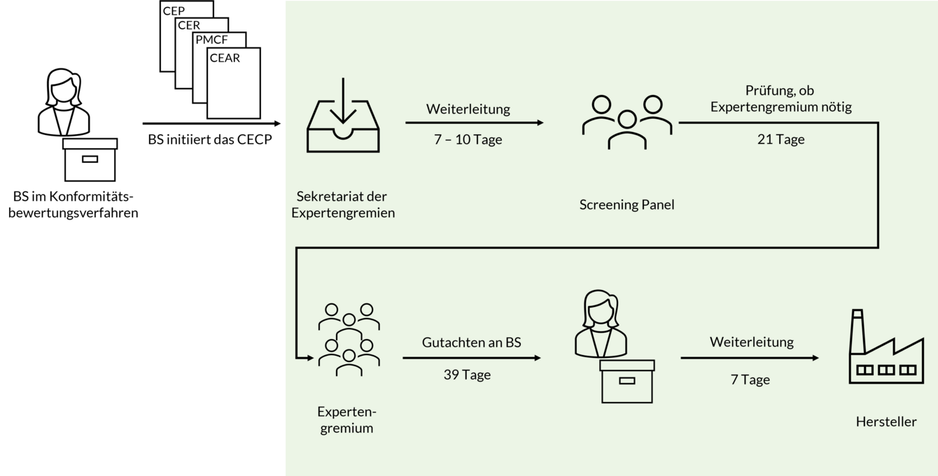 Das CECP ist ein in der MDR beschriebenes Verfahren innerhalb der Konformitätsbewertung für bestimmte Produkte der Klassen III und IIb. Ein Expertengremium kann von der Benannte Stelle für das Konformitätsbewertungsverfahren herangezogen werden. Das Expertengremium kann ein wissenschaftliches Gutachten vorlegen, welches durch die Benannte Stelle im Abschluss des Konformitätsbewertungsverfahrens berücksichtigt wird. Auch Legacy Devices können vom CECP betroffen sein. Kriterien zum Anstoßen des CECP sowie Kriterien zu Vorlage eines wissenschaftlichen Gutachtens sind vor allem Innovationen, erhebliche Änderungen des Nutzen-Risikoverhältnisses und die Häufung von schwerwiegenden Ereignissen. Diese Aspekte sollten in der klinischen Bewertung potenziell betroffener Produkte (Legacy Devices und auch neue Produkte) adressiert werden, um die notwendigen Entscheidungen im CECP-Prozess zu erleichtern.